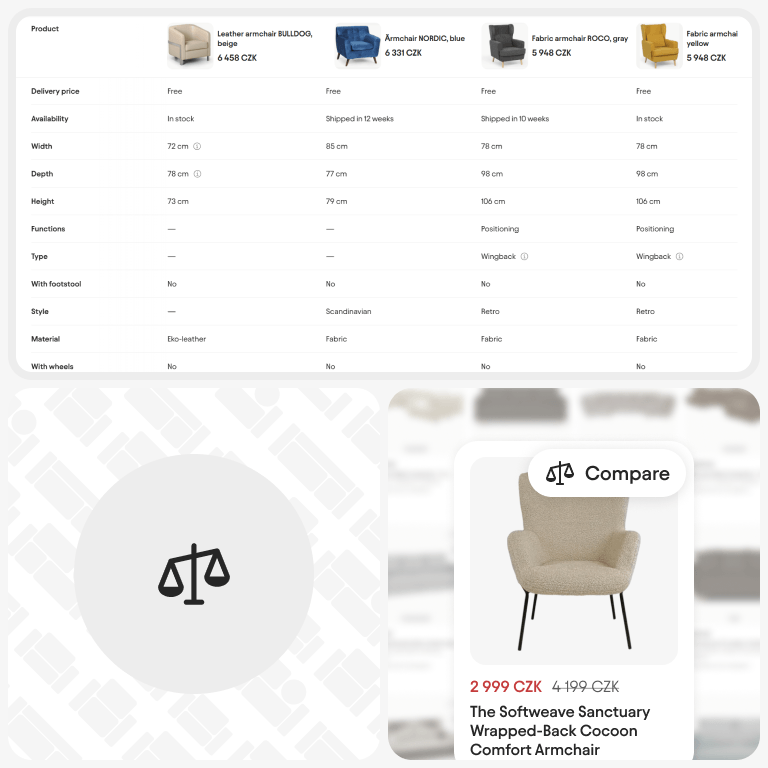 Сравнявайте продукти ясно в една таблица със снимки, цени и всички параметри един до друг.