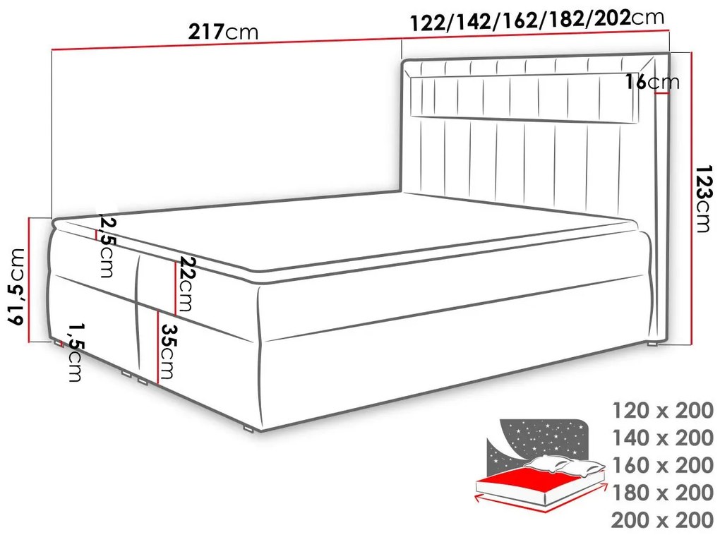 Тапицираното легло Aspen се характеризира със своя отличителен дизайн. Разполага с ефектна облегалка за глава с осветление, което в комбинация с удобния матрак ще създаде подходящата атмосфера за релакс и почивка във вашата спалня. Той също така включва две отделни места за съхранение, за да обслужва всичките ви практически нужди. - Субстрат с T30 пяна и пружини, твърдост H2/H3, интегрирани в рамката на леглото. - Горна част от висококачествени материали. - Достатъчно място за съхранение с два повдигащи механизма. - Здрава конструкция. - Европейски произход.