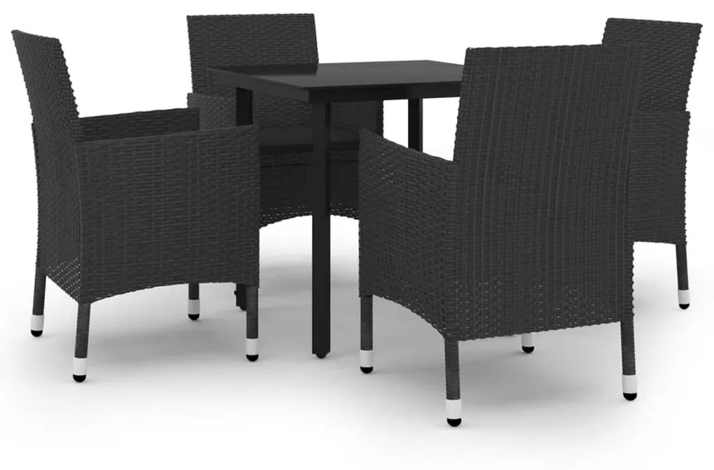 3185134 vidaXL Градински трапезен комплект възглавници 5 части черен полиратан