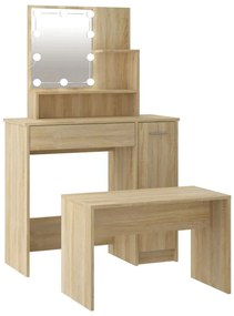 3114117 vidaXL Комплект тоалетка с LED, сонома дъб, инженерно дърво