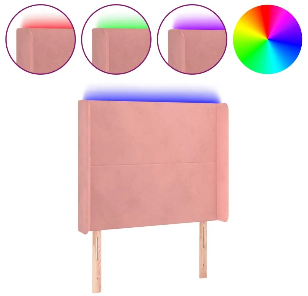 3121799 vidaXL LED горна табла за легло, розова, 100x5x78/88 см, кадифе