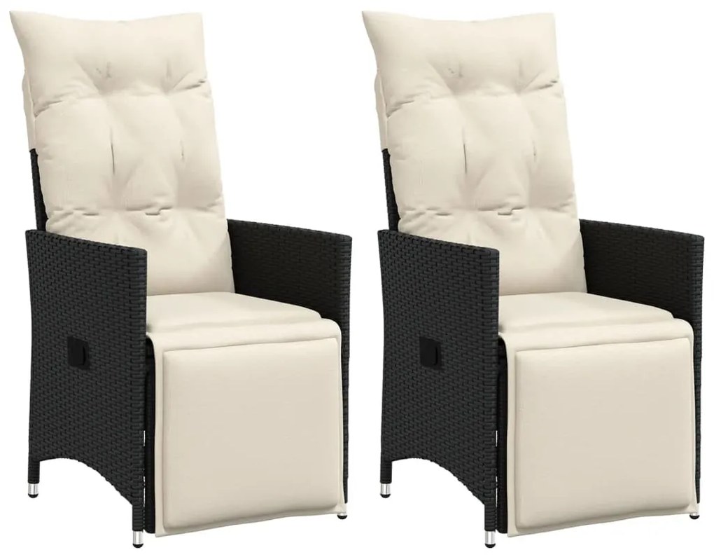 365666 vidaXL Накланящи градински столове с възглавници 2 бр черни полиратан
