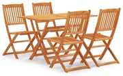 Този сгъваем дървен градински трапезен комплект е с класически рустик дизайн и ще бъде чудесен избор за хранене в градината или вътрешния двор.Този трапезен комплект е изработен от евкалиптово дърво, което е устойчиво на атмосферни влияния и дълготрайно за многогодишна употреба. Лакираното с маслена боя покритие се почиства лесно с влажна кърпа. Освен това масата разполага с отвор в средата за поставяне на чадър. Масата и столовете могат да бъдат сгънати за спестяване на място, когато не се използват. Забележка: За да удължите живота на вашите градински мебели, препоръчваме ви да ги почиствате редовно и да не ги оставяте ненужно на открито без защита.Почистване: Използвайте мек сапунен разтвор.Съхранение: Ако е възможно, съхранявайте на хладно и сухо място на закрито. Ако продуктът се съхранява на открито, защитете го с водоустойчиво покривало. Избършете и изсушете излишната вода или сняг от плоските повърхности след дъжд или снеговалеж. Позволете достатъчно циркулация на въздуха, за да избегнете повреди, свързани с влагата.