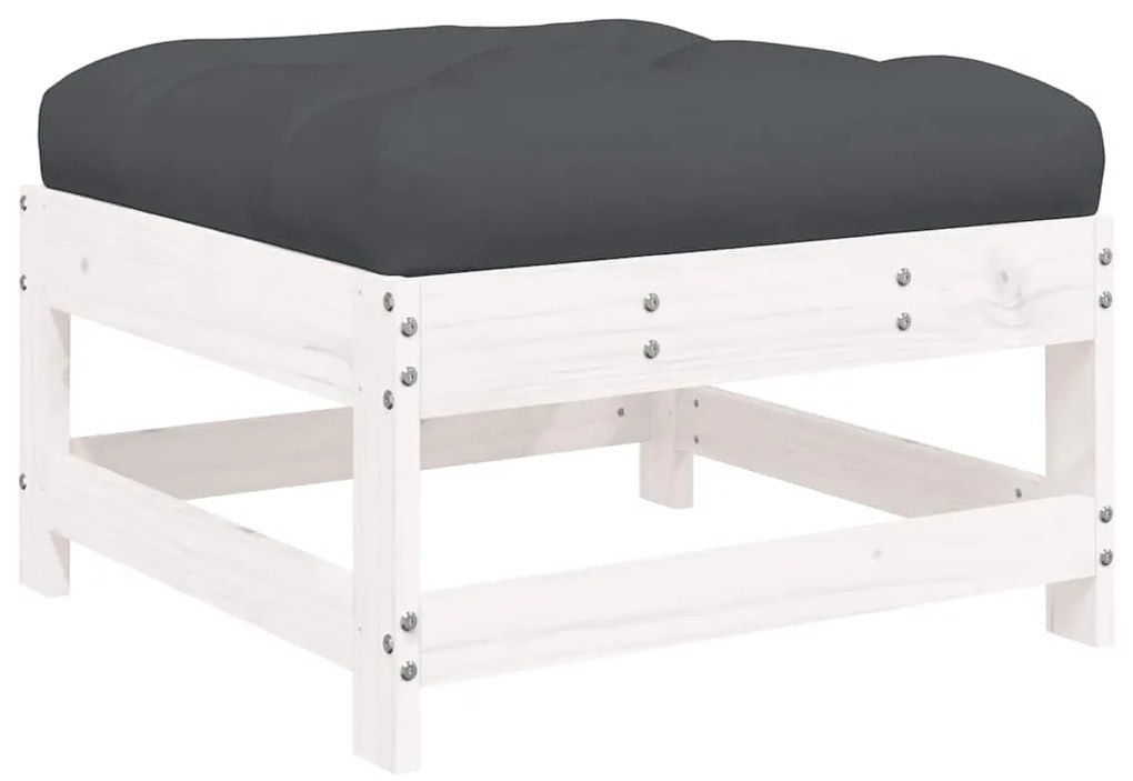 825668 vidaXL Градинска табуретка с възглавница, бяла, борова дървесина масив