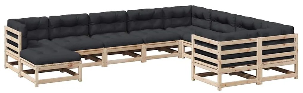 3299640 vidaXL Градински комплект диван с възглавници от 10 части, бор масив