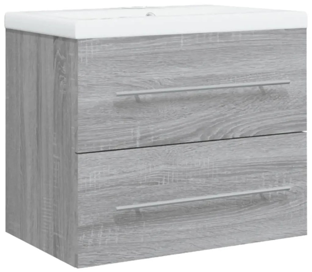 3120180 vidaXL Шкаф за мивка с вградена мивка, сив сонома, инженерно дърво