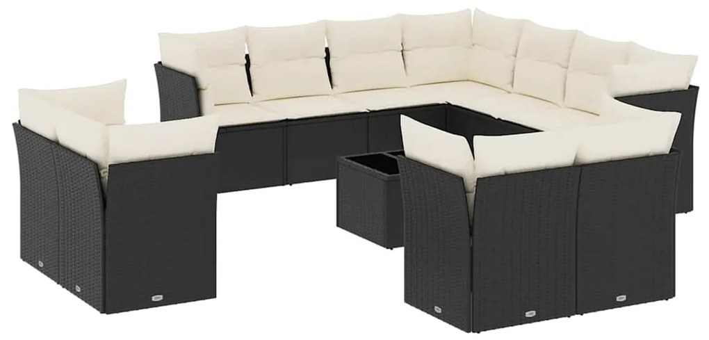 3224383 vidaXL Градински диван с възглавници, 12 части, черен, полиратан