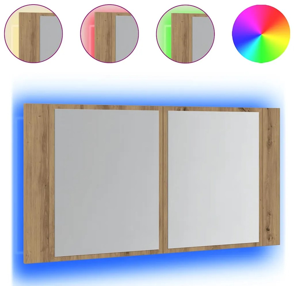 856285 vidaXL LED огледален шкаф, дъб артизан, 90x12x45 см, инженерно дърво