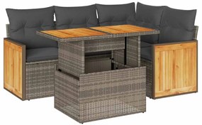 3327707 vidaXL Градински диван с възглавници, 5 части, сив полиратан акация