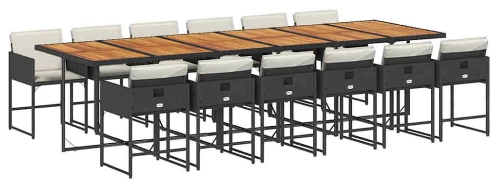 3211662 vidaXL Външен трапезен комплект 13 части с възглавници черен полиратан