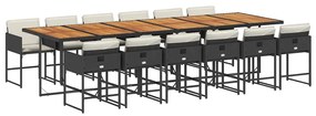 3277754 vidaXL Външен трапезен комплект 13 части с възглавници черен полиратан