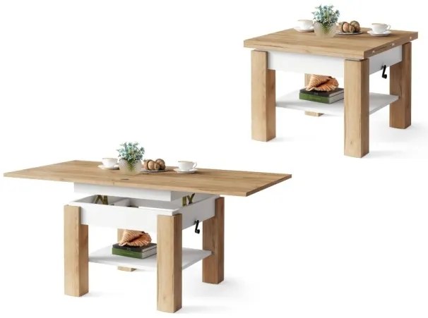 КЛЕО Дъб Крафт злато/Бял мат - РАЗТЕГАТЕЛНА ХОЛНА МАСА С ПОВДИГАЩ МЕХАНИЗЪМ