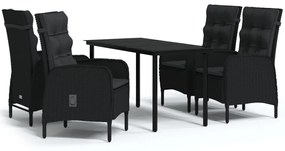 3099354 vidaXL Градински трапезен комплект от 5 части с възглавници черен
