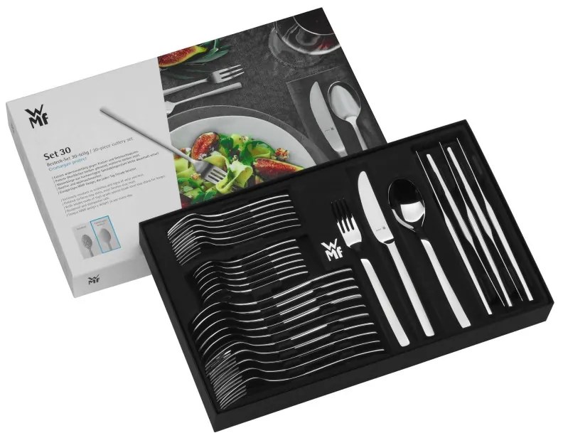 Комплект прибори за хранене WMF Virginia Protect, 30 части, Неръждаема стомана 18/10, Cromargan protect, Защита от надраскване и износване, Сребрист
