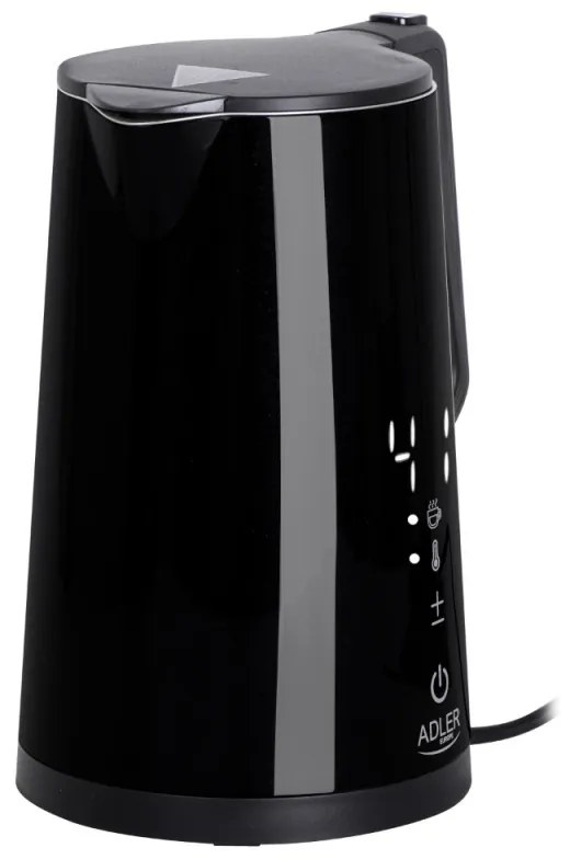 Електрическа кана с LED дисплей и настройка на температурата Adler - Система за контрол на безопасността STRIX - Мощност: 1850-2200 W - Обем: 1.7 литра - Въртяща се 360-градусова основа - Лесен за почистване плосък нагревателен елемент - LED дисплей, който показва температурата на водата в реално време - Вътрешен индикатор за нивото на водата - Регулиране на горещината на водата: 40/55/80/90/100 градуса - Функция поддържане на топлина: 40/55/80/90 градуса - Функция поддържане на топлината: МАКС 24 часа - Хладен на допир корпус - Автоматично изключване при завиране - Защита от кипене без вода - Термопрепазител - Система за съхранение на захранващия кабел - Захранващо напрежение: 220-240V, 50-60 Hz - Размери: Ширина: 22 см Дължина: 16 см Височина: 26 см - Дължина на захранващия кабел: 75 см - Цвят: Черен - Тегло: 1.25 Kg